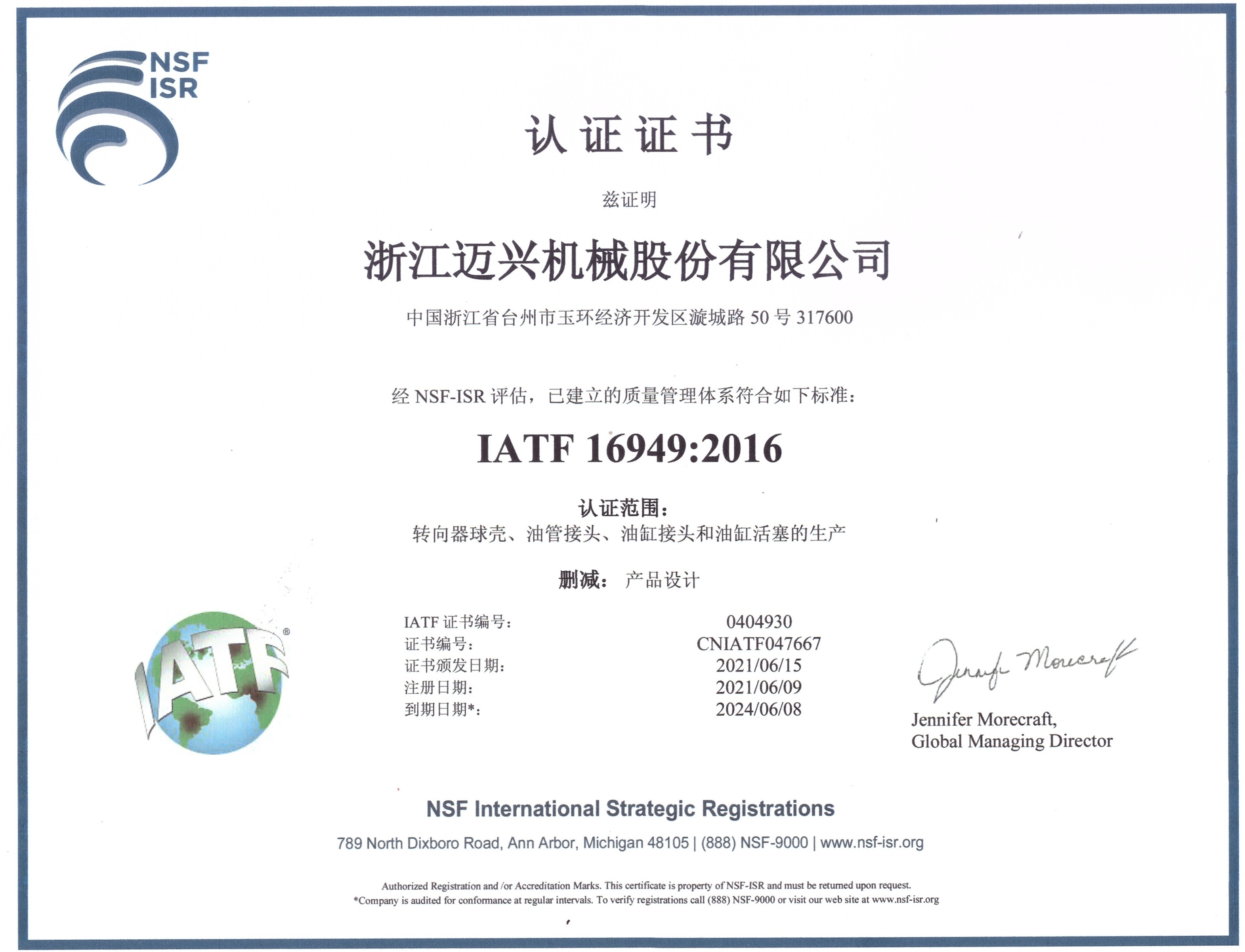 邁興秉持“提升興高度”的價(jià)值觀,不斷探索,提升自我。公司具有系統(tǒng)化生產(chǎn)制造能力,先后引進(jìn)行業(yè)先進(jìn)進(jìn)口制造、檢測(cè)、清潔設(shè)備,并不斷推進(jìn)數(shù)字化和無(wú)人化制造;公司具有系統(tǒng)化管理能力,研發(fā)投入EPR質(zhì)量管理系統(tǒng),跟蹤產(chǎn)品每一步進(jìn)程并加強(qiáng)現(xiàn)場(chǎng)品控,推進(jìn)無(wú)紙化管理。通過(guò)了ISO9001:2008, ISO/TS16949:2009,ISO/TS16949:2009管理體系認(rèn)證,ISO14001環(huán)境管理體系認(rèn)證,OHSAS18001職業(yè)健康安全管理體系認(rèn)證。同時(shí)是“高新技術(shù)企業(yè)”“省級(jí)科技型中小企業(yè)”“臺(tái)州市級(jí)企業(yè)技術(shù)中心”,“制造業(yè)高質(zhì)量發(fā)展先進(jìn)集體”“進(jìn)出口行為規(guī)范集體”等。